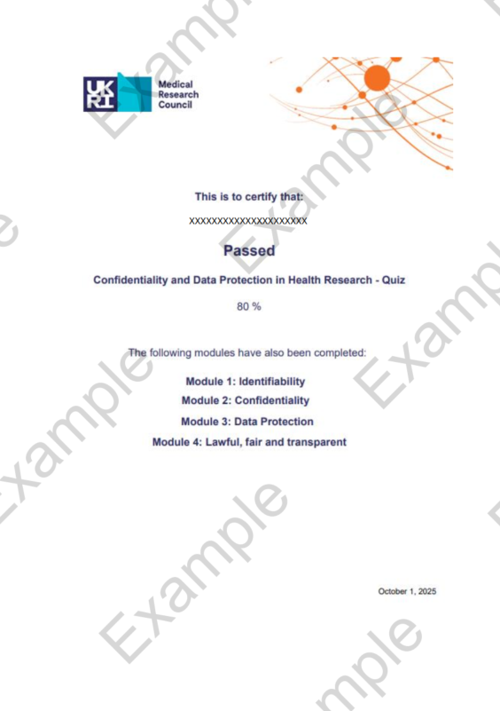 The MRC are not involved with the UK Biobank Research Analysis Platform (UKB-RAP) and completed certificates should not be forwarded to them.